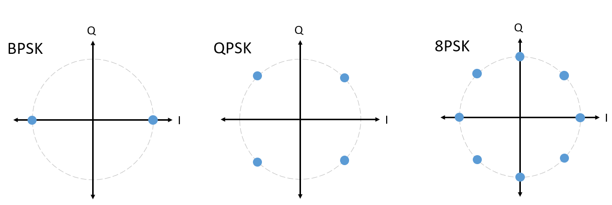 Now letâs consider modulating the phase in a similar manner as we did with the amplitude. The simplest form is Binary PSK, a.k.a. BPSK, where there are two levels of phase: