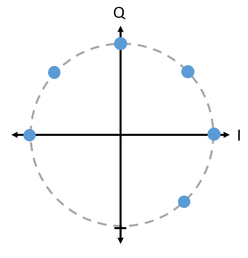 For PSK we always have N different phases, equally spaced around 360 degrees for best results. We often show the unit circle to emphasize that all points have the same magnitude: