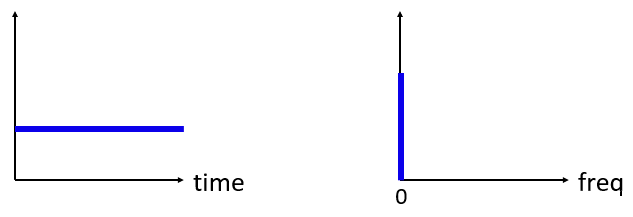 Now what if we have a constant signal in the time domain? A constant signal has no âfrequencyâ. Letâs see: