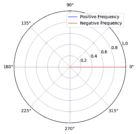 From a mathematical perspective, negative frequencies can be seen by looking at the complex exponential function, \(e^{2j \pi f t}\). If we have a negative frequency, we can see that it will be a complex sinusoid that rotates in the opposite direction.