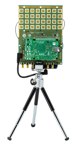 Lastly, we need to calibrate the phased array. This requires holding the HB100 at the arrayâs boresight (0 degrees). The side of the HB100 with the barcode is the side that transmits the signal, so that face should be held a few feet away from the Phaser, right in-front and centered to it, and then pointed straight at the Phaser. In the next step you can experiment with different angles and orientations, but for now letâs run the calibration utility: