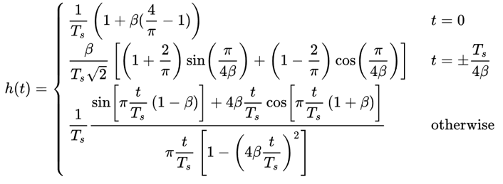 h = np.sinc(t/Ts) * np.cos(np.pi*beta*t/Ts) / (1 - (2*beta*t/Ts)**2)