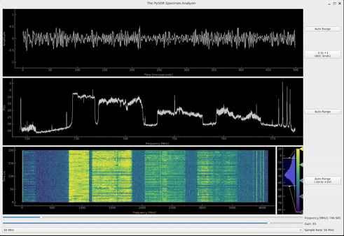 Qt (pronounced âcuteâ) is a framework for creating GUI applications that can run on Linux, Windows, macOS, and even Android. It is a very powerful framework that is used in many commercial applications, and is written in C++ for maximum performance. PyQt is the Python bindings for Qt, providing a way to create GUI applications in Python, while harnessing the performance of an efficient C++ based framework. In this chapter we will learn how to use PyQt to create a real-time spectrum analyzer that can be used with an SDR (or with a simulated signal). The spectrum analyzer will have time, frequency, and spectrogram/waterfall graphics, as well as input widgets for adjusting the various SDR parameters. We use PyQtGraph, which is a separate library built on top of PyQt, to perform plotting. On the input side, we use sliders, combo-box, and push-buttons. The example supports the PlutoSDR, USRP, or simulation-only mode. Even though the example code uses PyQt6, every single line is identical to PyQt5 (besides the import), very little changed between the two versions from an API perspective. Naturally, this chapter is extremely Python code heavy, as we explain through examples. By the end of this chapter you will have gained familiarity with the building blocks used to create your own custom interactive SDR application!
